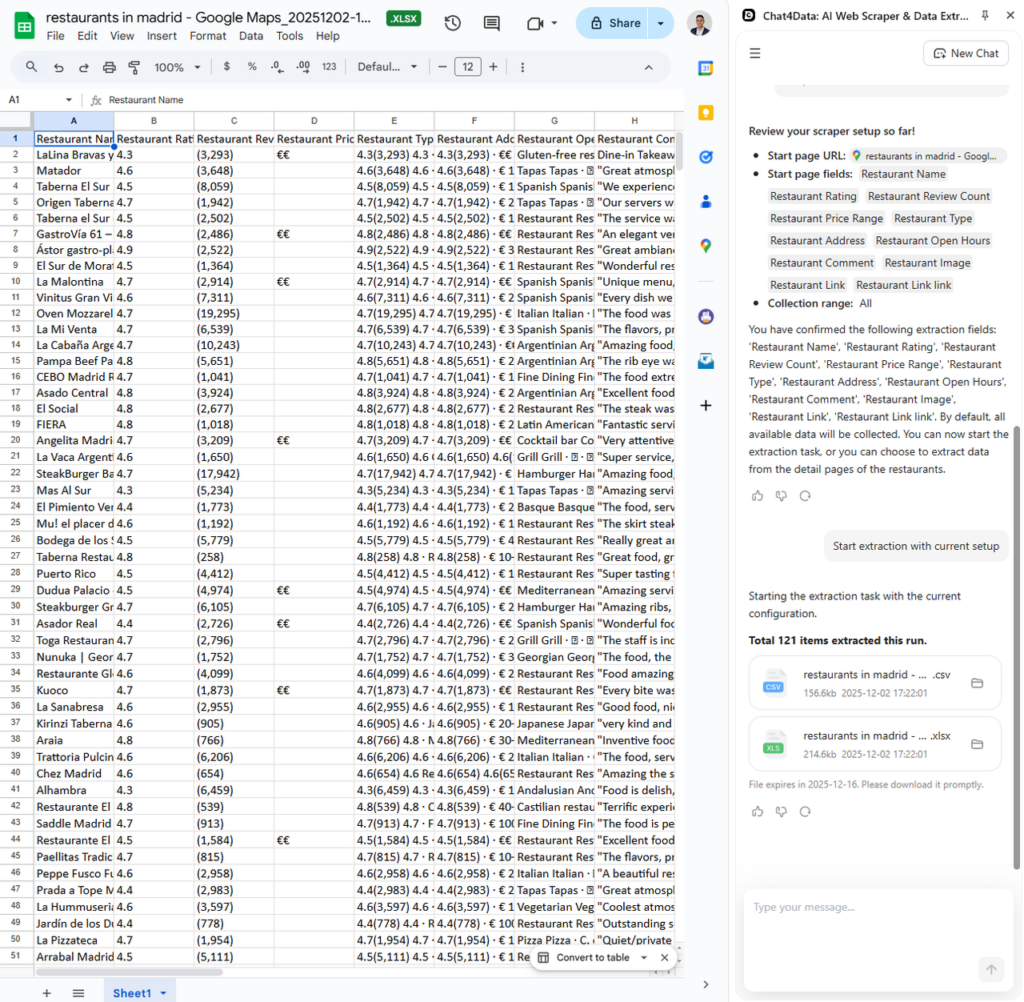 Initially, I attempted to scrape restaurant listings in Madrid from Google Maps, but it refused to do so directly.